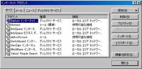 D こうしてメールアドレスを取得しましたら”Outlook Express”を開いて、上のバーの”ツール”→”アカウント”で写真のような画面が開くはずです。 |