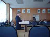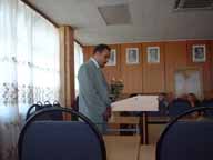 | おそらくロシアで本科を卒業した人は絶対に避けては通れない道”卒論発表会”(ザッシータ)我々の学校もとうとうこの季節がやってまいりました。 おそらく学校によってはシステムが少しずつ変わっていると思いますがこの卒論発表会、どのようか感じになっているのか興味がある人もいると思います。その人たちのためにわかりやすい写真を入れながら解説していきたいと思います。 ![]() 大体大学によっては始まる時間がまちまちですがうちのところでは朝10時から開始なのにもかかわらずロシアということもあって、みんなまだ集まっておりません(苦笑) 今日、発表を聞いてくれる先生の机の上には花や水、果物を並べるために生徒がせわしなく歩き回っておりまして、結構、緊張感漂う雰囲気です。 (写真左) もちろん先生方への花や水、果物のお金は生徒たちから集金されることになります(苦笑)←普通は学校がだすのでは?という疑問が浮かびますが・・・まあロシアということで。 写真を見てもわかりますとおり、この部屋、普段は国家試験やら、先生方の会議にしか使われない部屋で生徒はめったに入ることができないのです。そのなれない環境の中で自分の卒論を発表するのはさすがにロシア人でもきついと思います。実はこの部屋、ロシアにしては珍しくクーラーがきいておりまして、温度調節も適度に保たれております。これにはさすがのカメも感動してしまいました(笑)