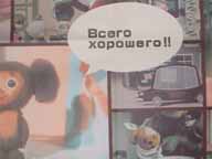 カレンダーは写真にもありますように映画”チェブラーシカ”の名場面の写真が所狭しと並べられ、映画を見た人は”あ〜、このシーン知ってる!!”と思わず叫びたくなるようなカレンダーです。それにもう一つの特徴はふきだしがロシア語になっておりましてロシア語の勉強にも最適です(^^)