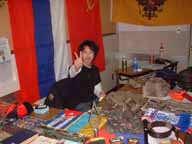 一階ではすでにユーラシア協会の方たちが飾り付けをしておりまして、多くのロシアグッズの販売も行われておりました。もちろん、人気のチェブマトリョーシュカも販売されておりまして(ロシぴろのものとはちょっとちがいますが。)かなり豪華でした。右写真はなんとボルシチのインスタントです。これはかなり興味をひきました。