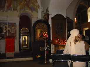 真ん中には”イエスが復活した”と書かれてあります。 ロシア正教といえばやはりイコン。 中はこのような厳かな雰囲気が・・・。