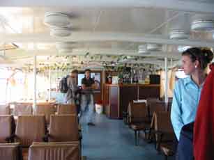 その日は余裕の朝のはずでした。たまたま知り合いの某マダムの車で行くことになり、朝から爽やかかつ優雅なドライブを楽しんでしまったわけですが、集合よりかなり早めに着いたので友人と共に赤の広場やグム百貨店などをぶらぶらしていたら、いつの間にか出港直前の時間に!(まあよくある事ですが)結局最後は猛ダッシュで船へと乗り込み、滑り込みセーフの出発となりました。(余裕の朝はどこへやら・・・)