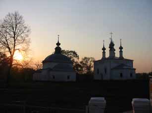 ともかくやっと休むことができ安心して再び元気を取り戻した私たちは、夕食がてら夕暮れ時のスズダリの街をお散歩に出かけました。春の夕暮れに映える中世教会群の美しさ、景色そのものの美しさにはっさく1号は再び胸がいっぱいに。本当に、なんともいえない美しさなのです。そうまるで、過去のある時のまま時が止まってしまったかの様な。(大袈裟ではありませんよ年の為^^;)そういうセリフがすんなり出てきてしまうほど綺麗だったのです。